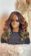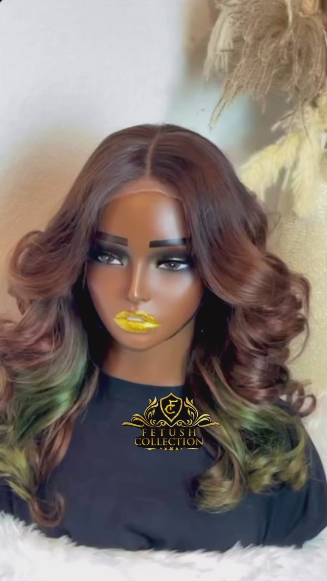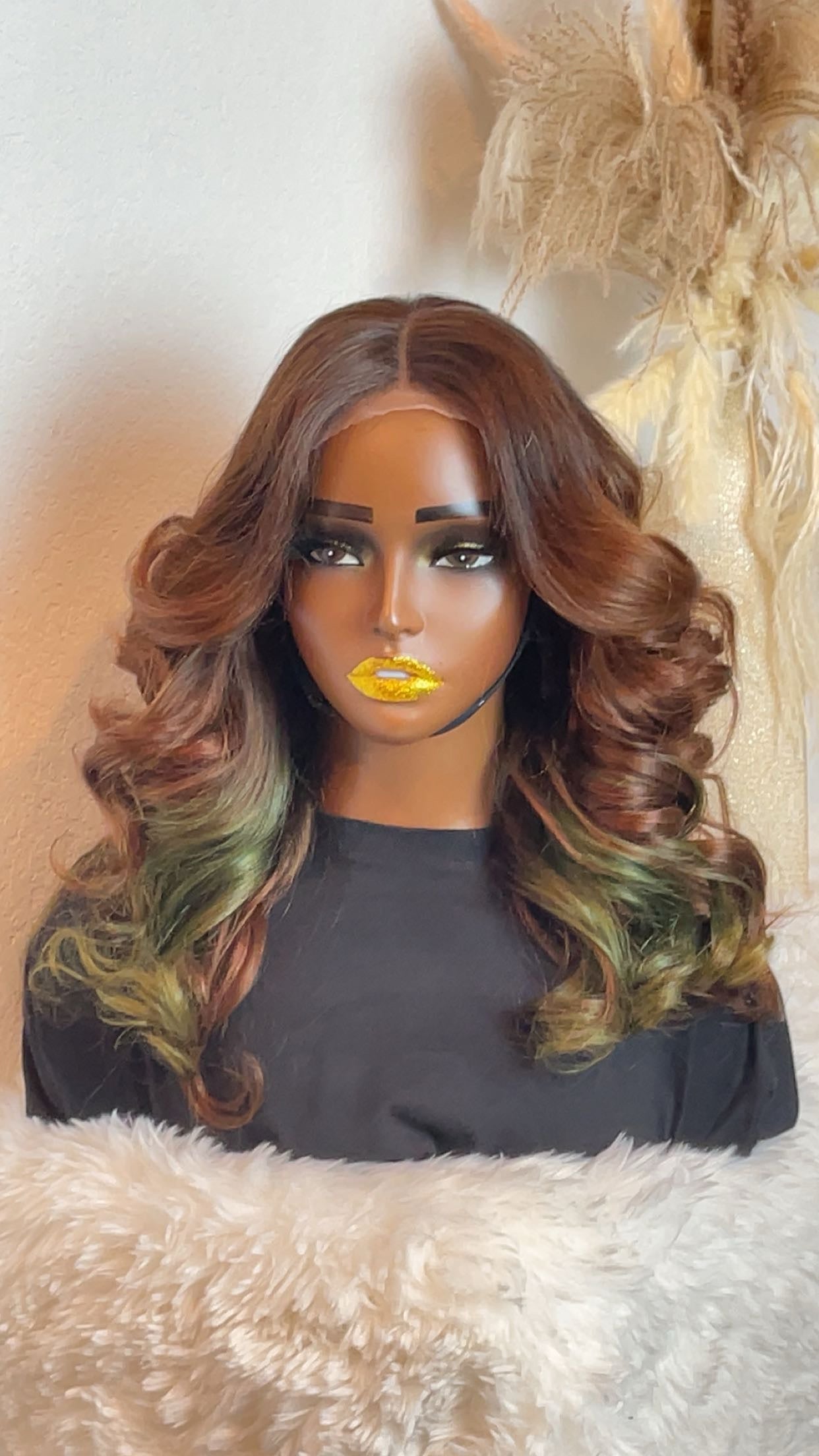 Step into the spotlight with our Luxe Glam Bouncy Wig — where bold beauty meets timeless elegance. This stunning unit features rich chocolate brown tones seamlessly melting into soft green tips, creating a sophisticated yet daring ombré effect. Crafted with premium strands for a natural luster and soft feel, it’s designed to hold luxurious, bouncy curls all day.